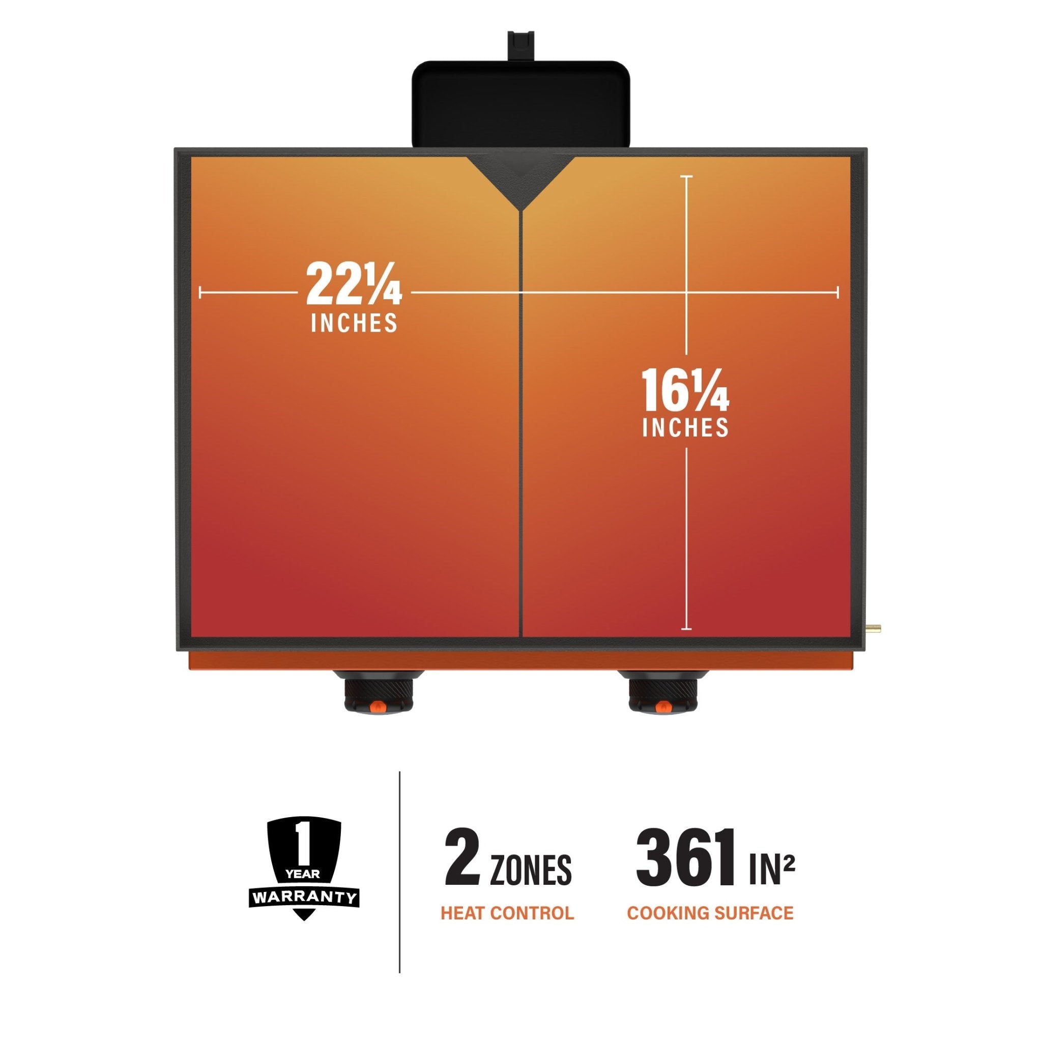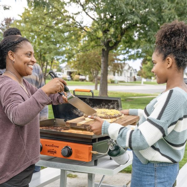 Enjoy your favorite meals at the lake. the park. or wherever you end up with the Blackstone Adventure Ready 22” Tabletop Griddle with Hard Cover. The hard cover protects the griddle top between uses so you’re always ready for spontaneous outings. and the two independently controlled heat zones allow you to enjoy the freedom of cooking breakfast. lunch. and dinner anytime!