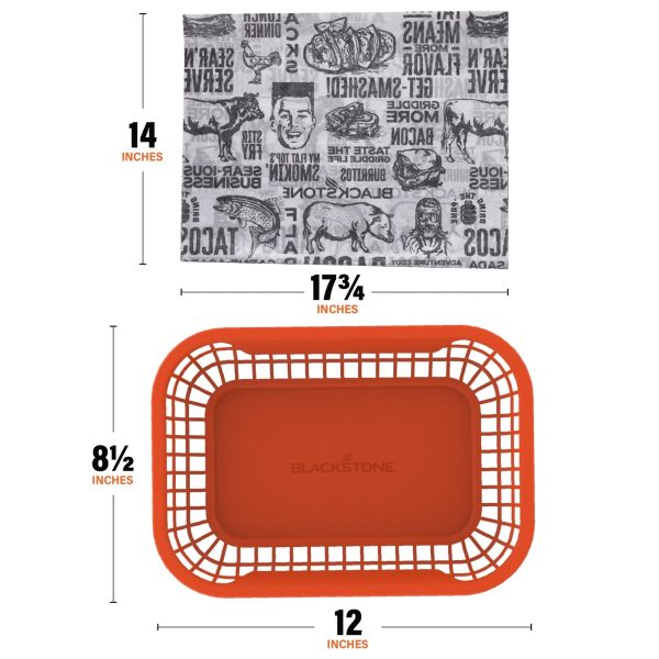 Turn your backyard into your own diner with the Blackstone Burger Baskets with Basket Liners. The multipurpose baskets can be used to serve up burgers and fries. sandwiches. breakfast dishes. and anything else you can think of! Cover the basket with the disposable liner and once the meal is done. throw away the liner and place the basket in the dishwasher for effortless cleanup. Make your breakfast. lunch. and dinner a unique experience with the Burger Baskets with Basket Liners.